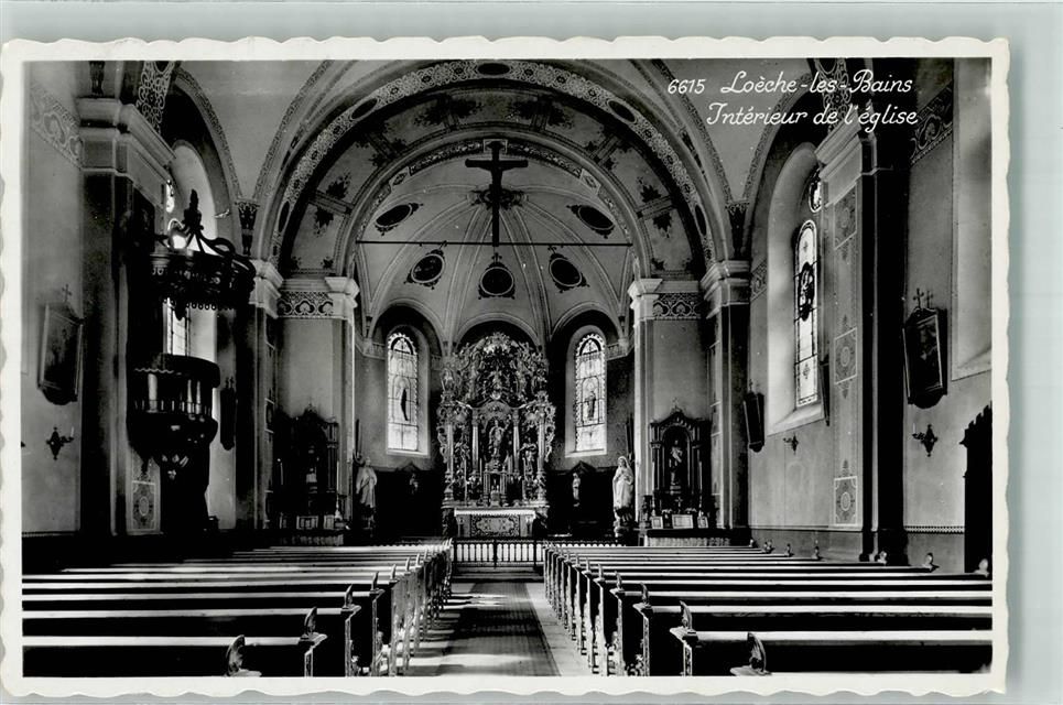 3954 Leukerbad Loèche-les-Bains Foto AK Kirche Innenansicht Altar Bahnpost Zug 1433