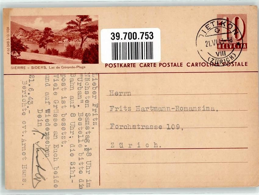 3960 Sierre Ganzsache 10 Rappen Siders Lac de Geronde-Plage