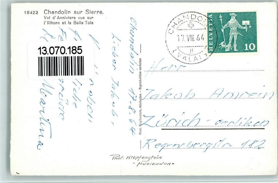 3961 Chandolin 1964 - Teilansicht, Chandolin sur Sierre, Verlag KLopferstein Nr. 18422, gute Erhaltung AK