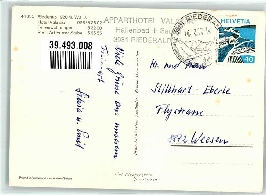 3987 Riederalp - Hotel Valaisia Hüttenstempel Winter