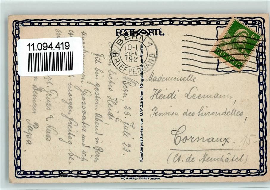 3987 Riederalp - Lithographie sign Züricher U. W.