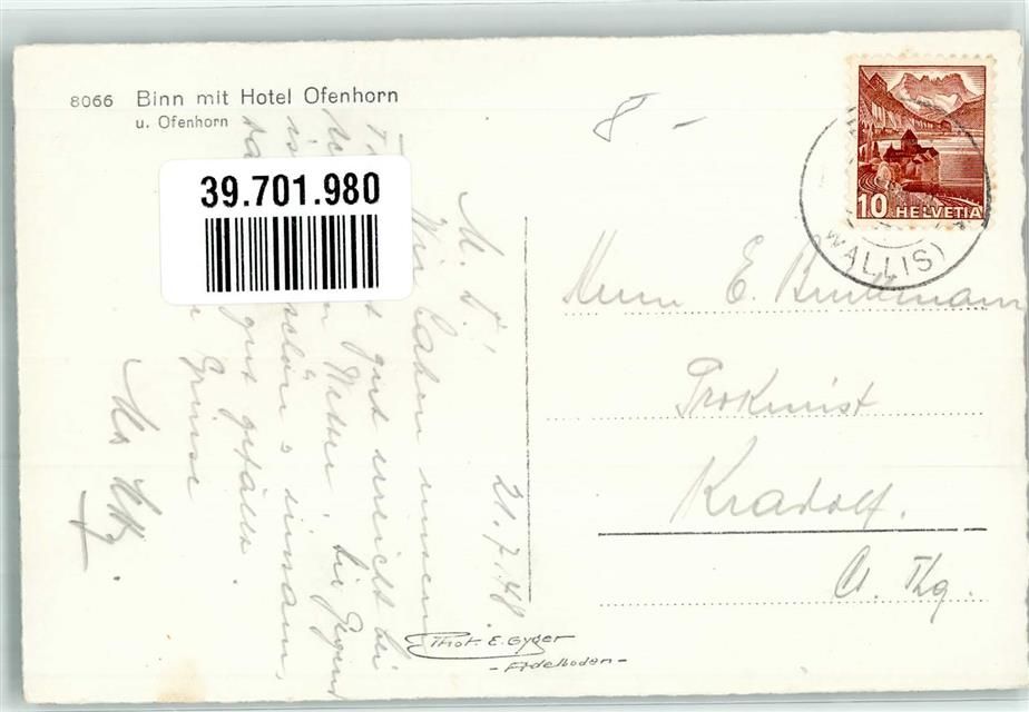 3996 Binn Foto AK Ofenhorn Foto Gyger