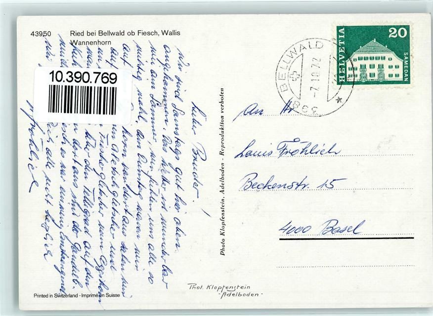 3997 Bellwald 1972 - Ried bei Bellwald ob Fiesch Wannenhorn
