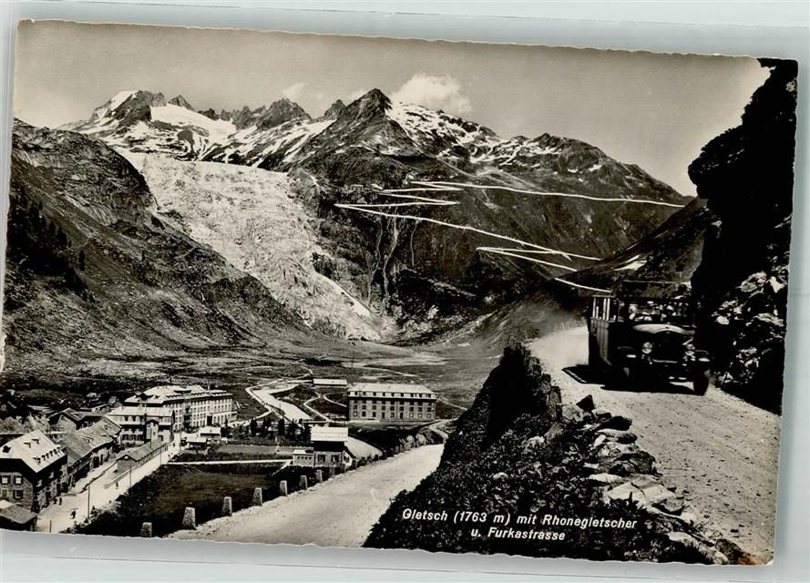 3999 Oberwald Foto AK Omnibus Furkastrasse Rhonegletscher Gletsch