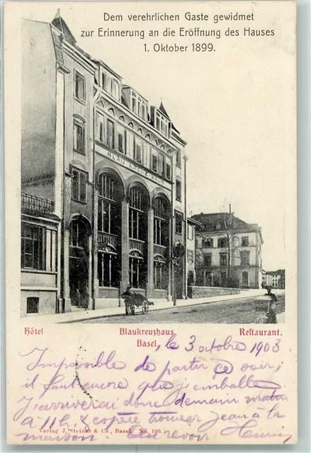 4000 Basel Bâle 1903 - Blaukreuzhaus Hotel Restaurant Eröffnung 1899