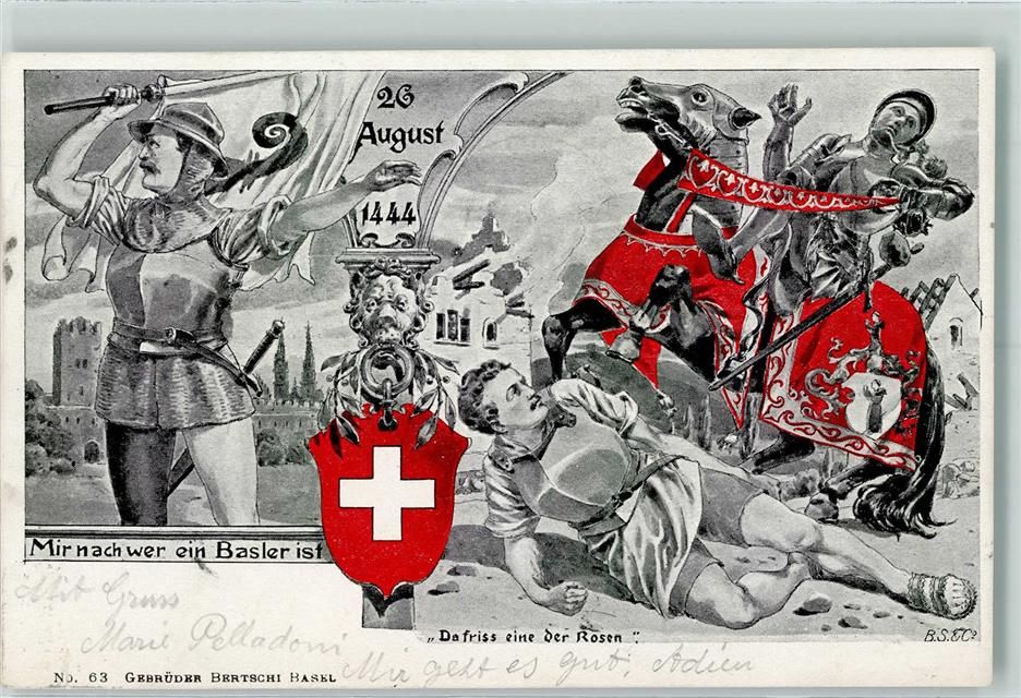 4000 Basel Bâle 1904 Gebrauchsspuren Edelmann Ritter auf Pferd