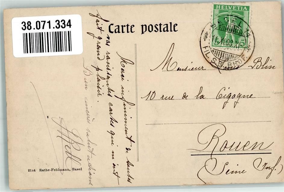 Basel, Rathaus Regierungsrats-Saal Briefmarke Bildseite