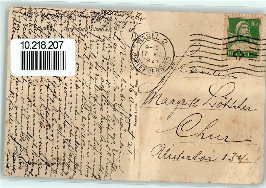 4000 Basel Bâle 1921 Gebrauchsspuren Weg nach Alschwil
