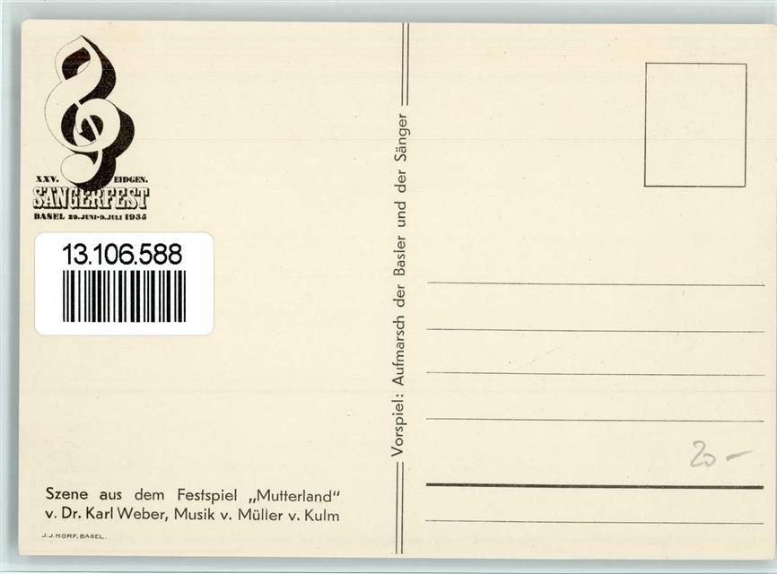 4000 Basel Bâle 1935 Künstlerkarte SSängerfest 1935 - Vorspiel - Szene aus dem Festspiel "Mutterland , sehr gute Erhaltung AK "