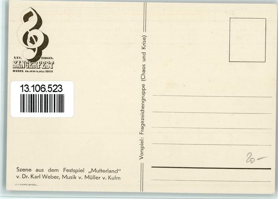 4000 Basel Bâle 1935 Künstlerkarte XXV Sängerfest 1935 - Szene aus dem Festspiel "Mutterland"