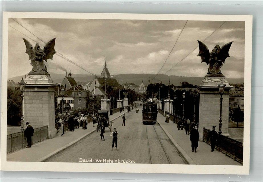 4000 Basel Bâle Foto AK Wettsteinbrücke Denkmal Drachen traßenbahn