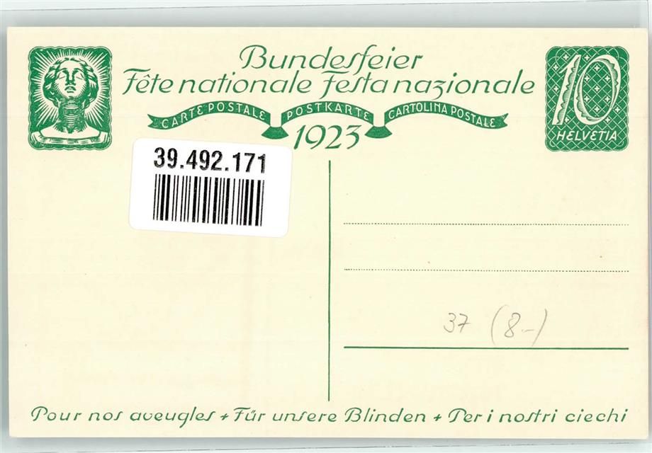 4000 Basel Bâle Ganzsache sign.? Bundesfeier 1923