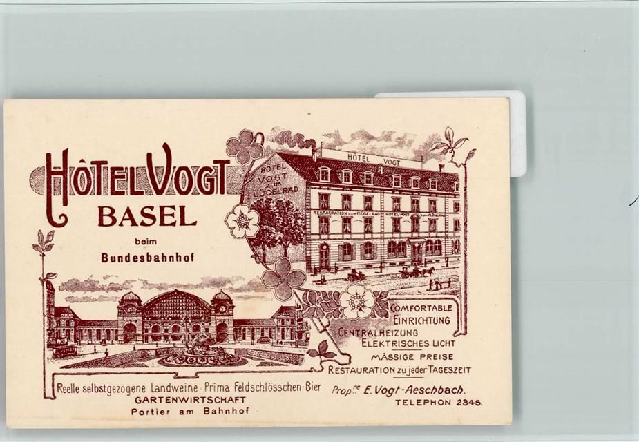 Basel, Hotel Vogt beim Bundesbahnhof - Visitenkarte