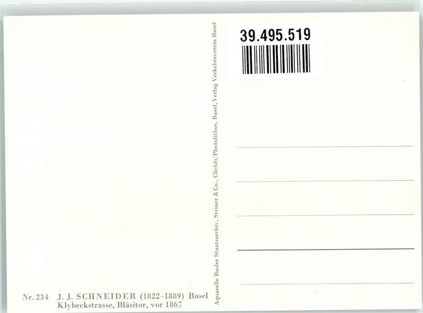 Basel, sign. J.J. Schneider Serie Nr. 234 Klybeckstrasse Bläsitor