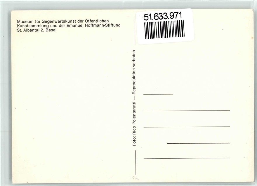 4000 Basel Bâle - Museum für Gegenwartskunst der Öffentlichen Kunstsammlung und Emanuel Hoffmann-Stiftung