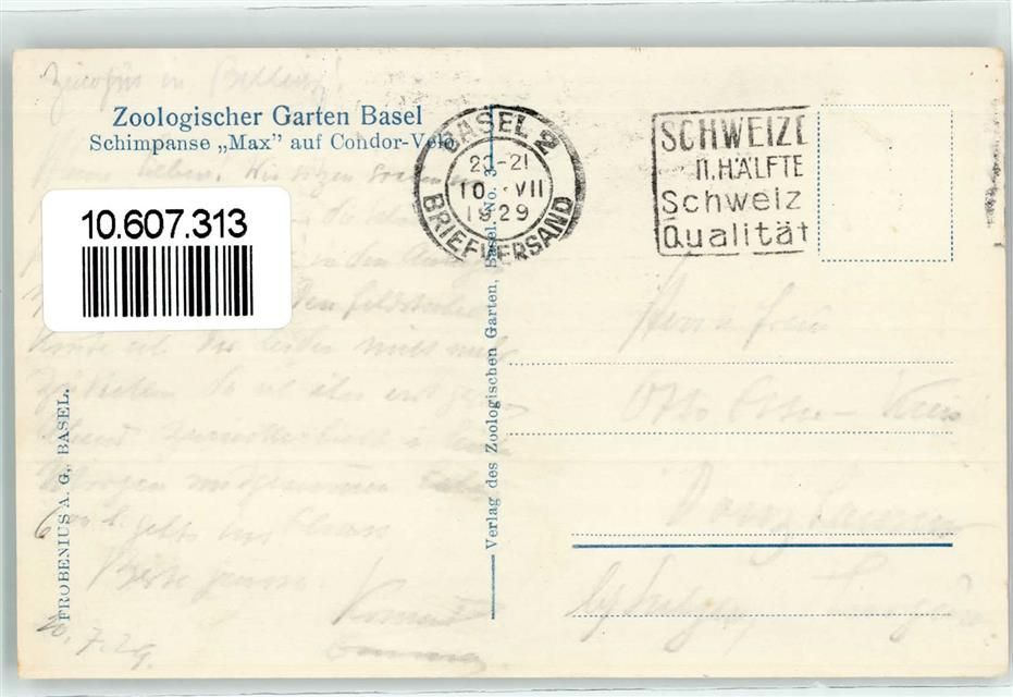 4000 Basel Bâle - Zoologischer Garten Schimpanse Max auf Condor Velo