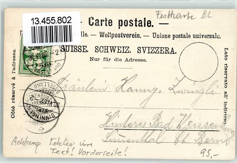 4102 Binningen 1902 - Basellandschaftliches Kantonalgesangsfest