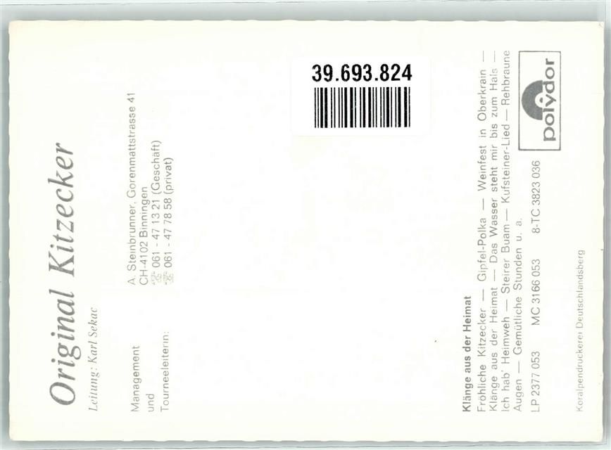 Binningen, Original Kitzecker Informationskarte