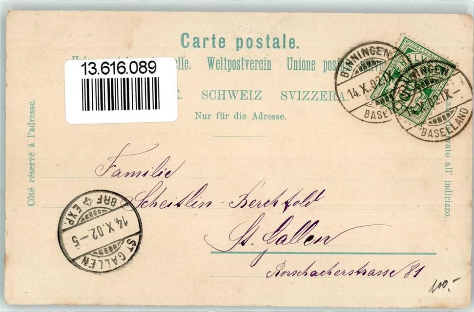 4103 Bottmingen 1902 Lithographie Schloss Konzertsaal Allee