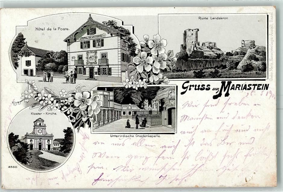 Mariastein, Gruss aus Kloster Kirche Hotel de la Poste Verlag Gebr. Metz 2560