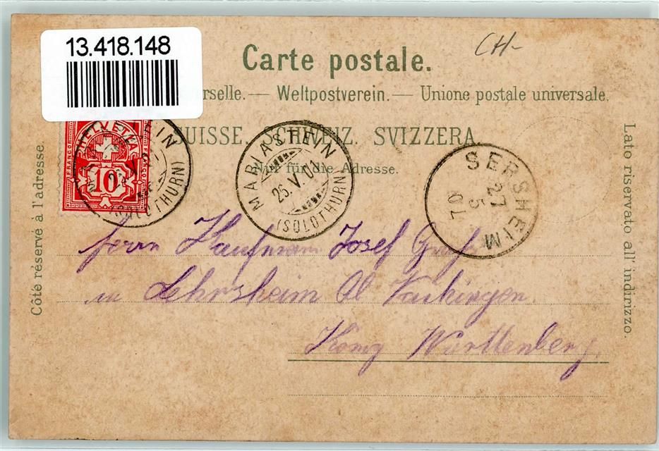 4115 Mariastein 1901 Lithographie Gruss aus Kloster Kirche Hotel de la Poste Verlag Gebr. Metz 2560