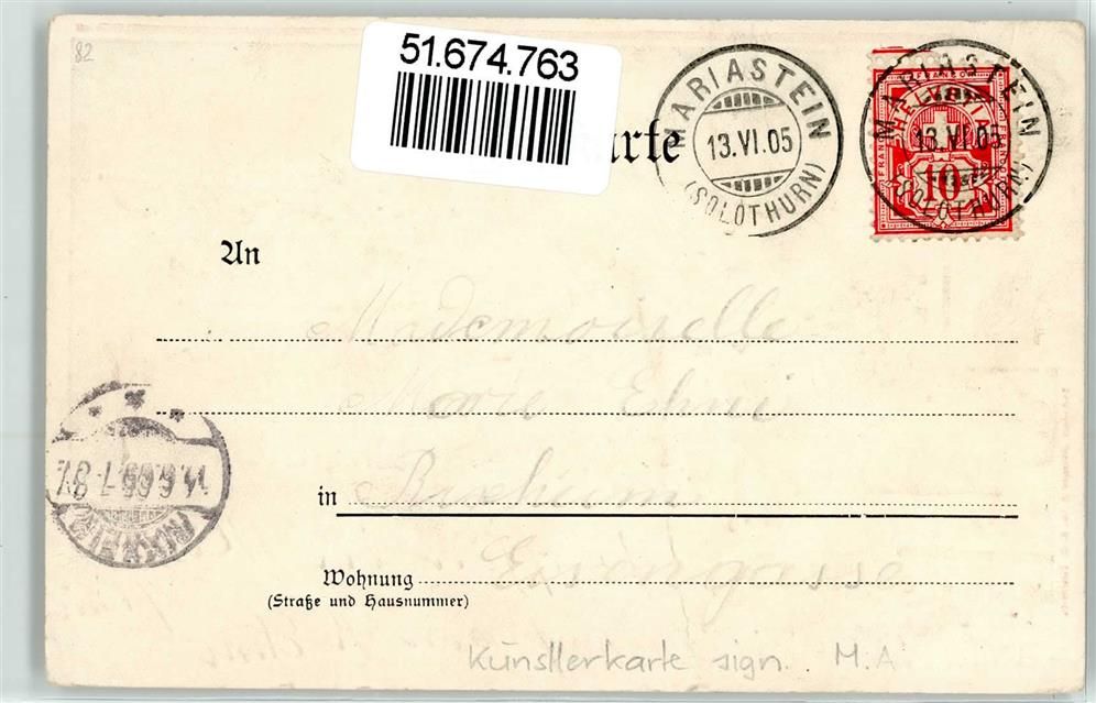 4115 Mariastein 1905 Lithographie