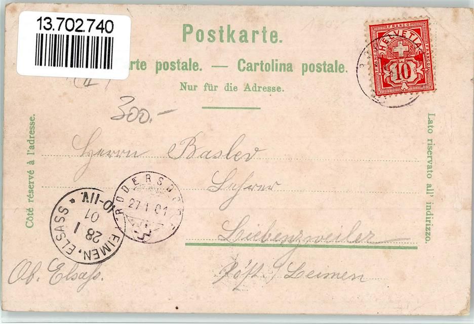 Rodersdorf, LithographieSchule Gasthaus Handlung G. Brunner Kirche Gebrauchsspuren, bitte Scan genau beachten!