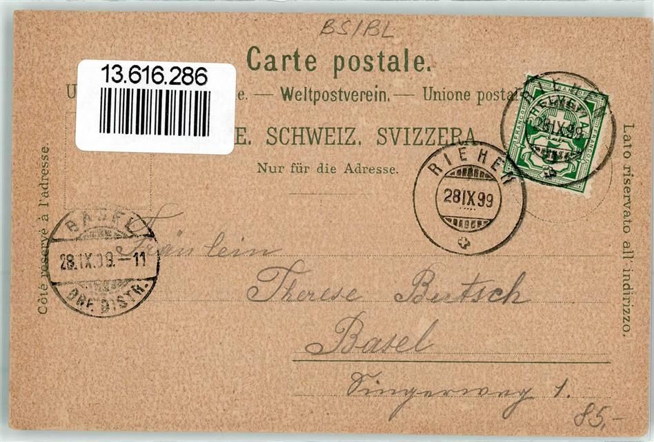 4125 Riehen 1899 Lithographie Taubstummen-Anstalt Dorfstrasse