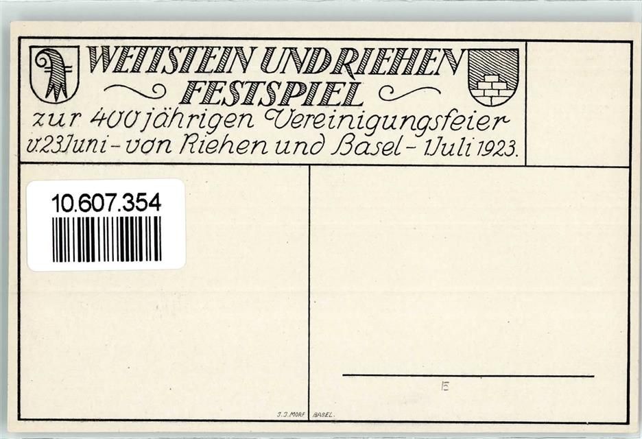 4125 Riehen 1923 - Wettstein und Riehen Festspiel zur 400 jährigen Vereinigungsfeier