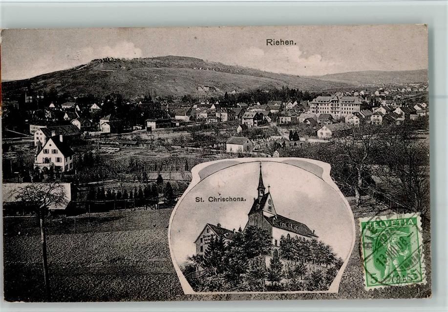 Riehen, St. Chrischona Ortsansicht Nachporto Stempel