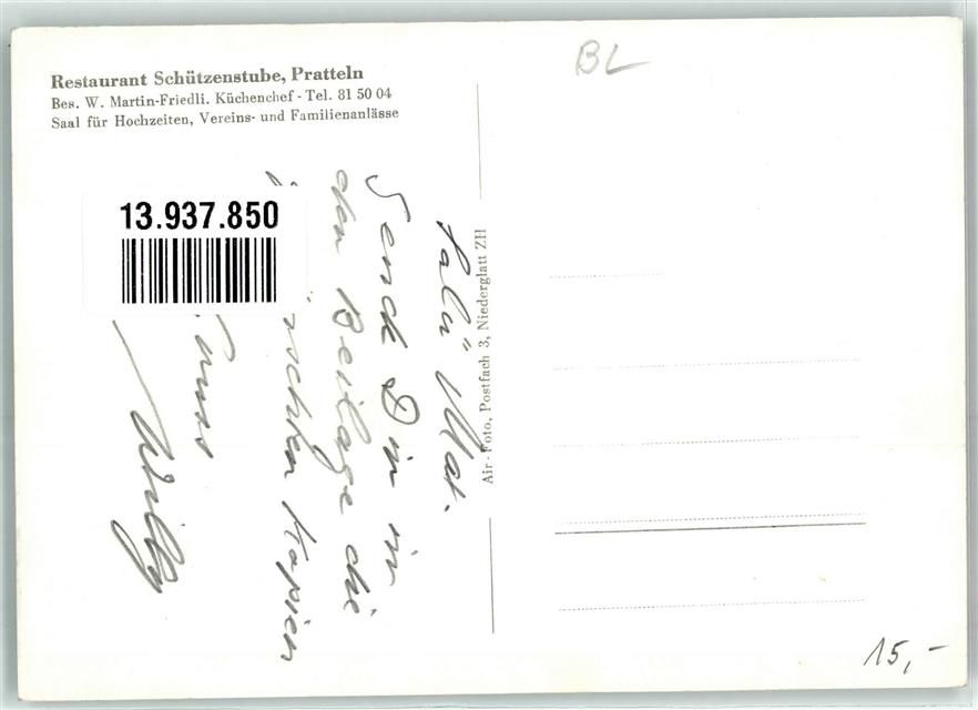 4133 Pratteln - Gasthaus Schützenstube Fliegeraufnahme