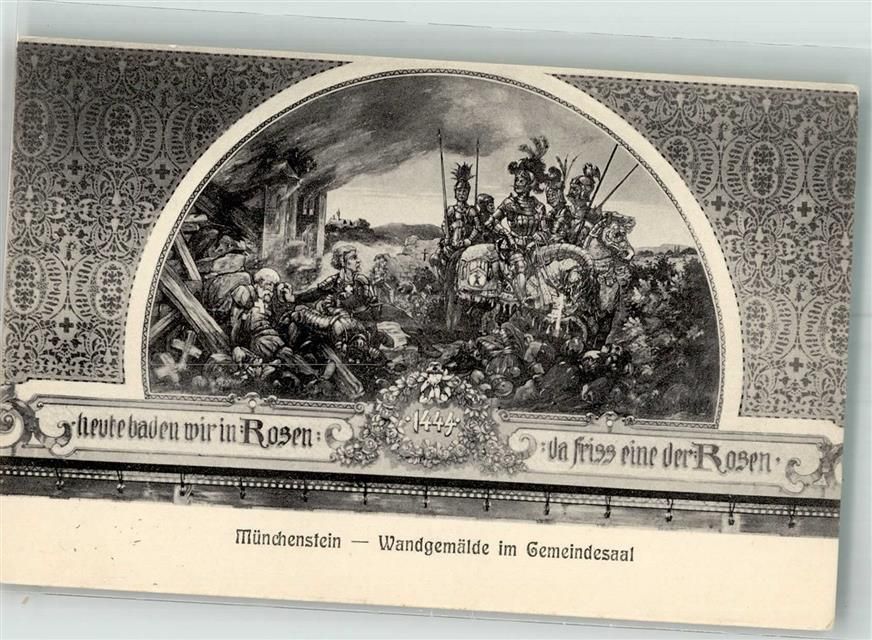 4142 Münchenstein Foto AK Gemeindesaal Wandgemälde