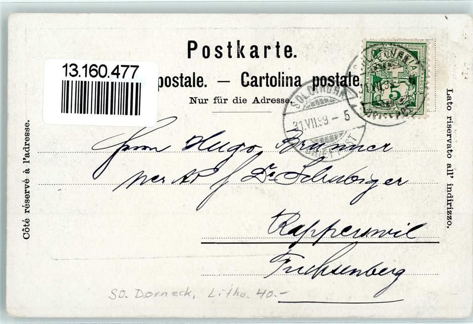 4143 Dornach 1899 Künstlerkarte Schloss Dorneck sign