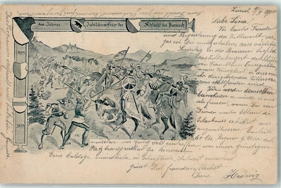 4143 Dornach 1900 Künstlerkarte 400jährige Jubiläumsschlacht der Schlacht bei Dornach sign