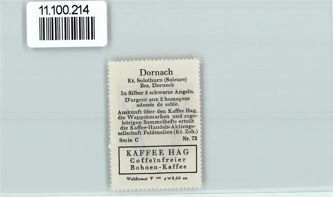 Dornach, Vignette Wappen Kaffee Hag ca 1920-1940