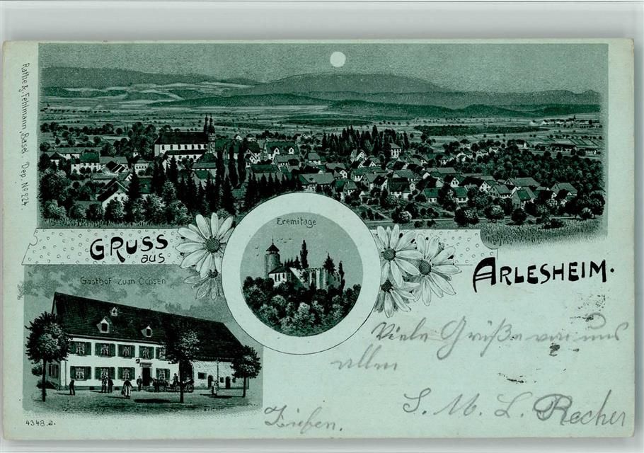 4144 Arlesheim 1903 BOAKC Gasthaus Ochsen Lithographie / Mondschein