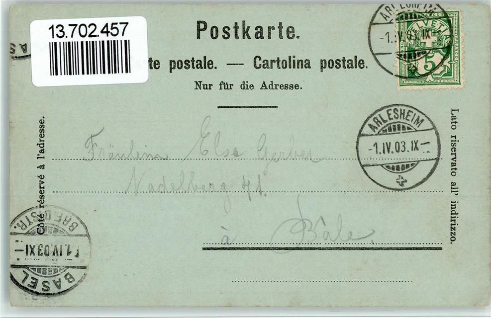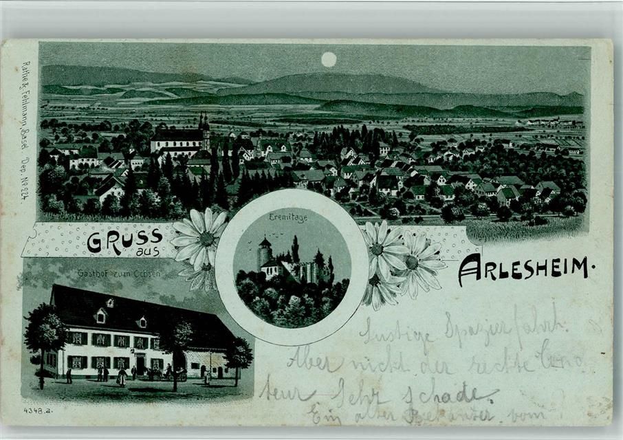 4144 Arlesheim 1903 BOAKC Lithographie/Mondschein Gasthaus Zum Ochsen Eremitage