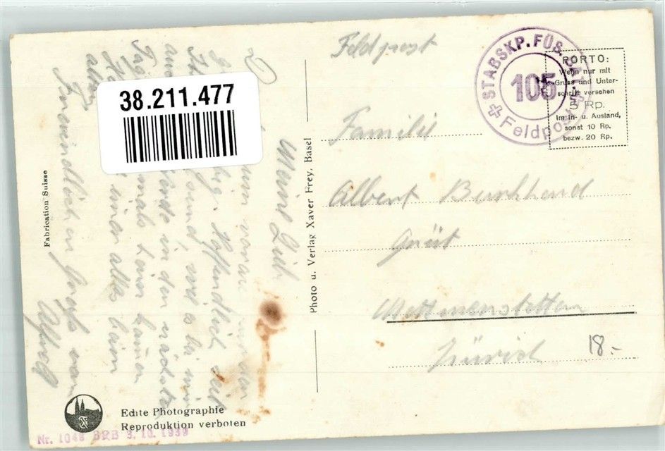 Arlesheim, Feldpost Stabskp.Füs.Batt. 105