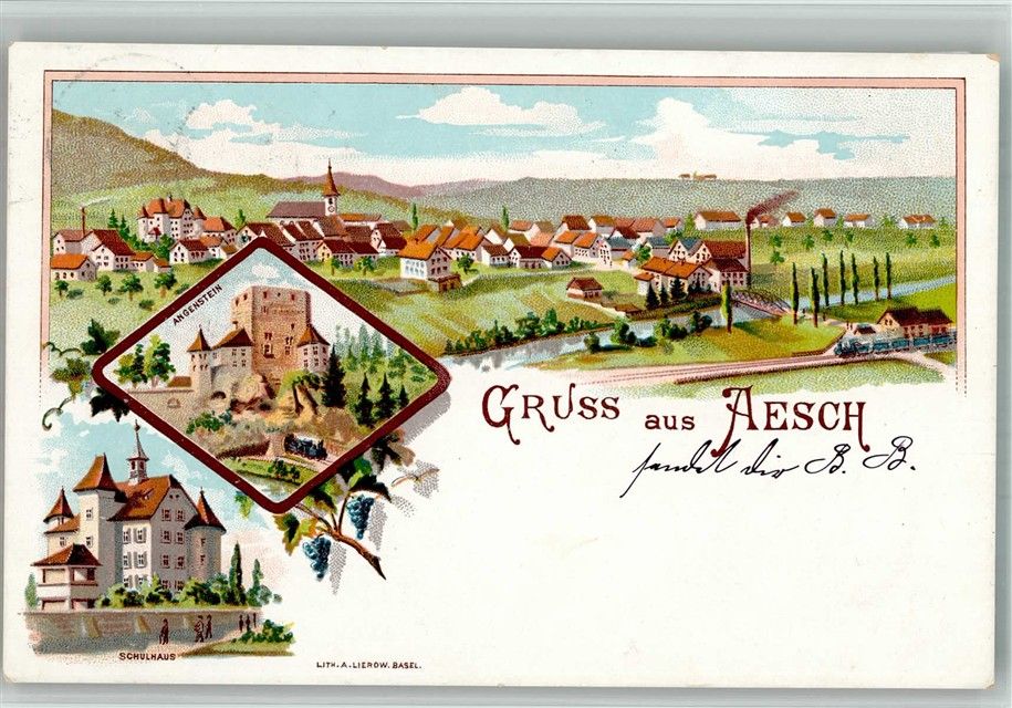 4147 Aesch BL 1898 BOAKC Eisenbahn Schloss Angenstein Schulhaus