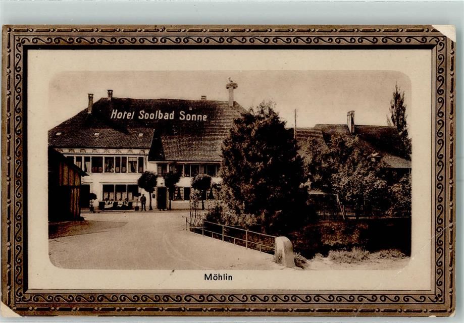 4313 Möhlin 1912 Gebrauchsspuren Prägedruck Hotel Soolbad Sonne Passepartout Rahmen