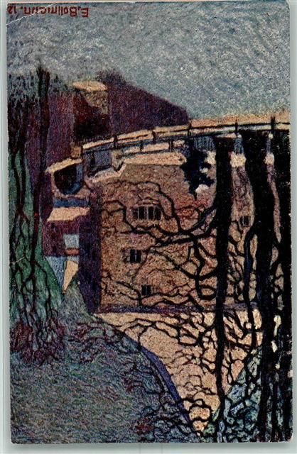 4313 Riburg Möhlin Gebrauchsspuren Lithographie Künstlerkarte sign. E. Bollman