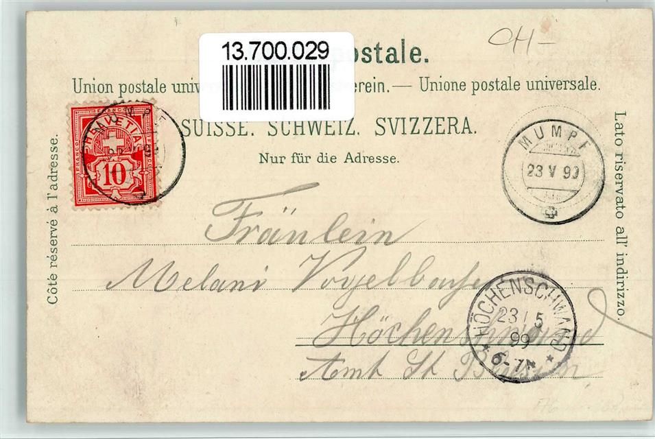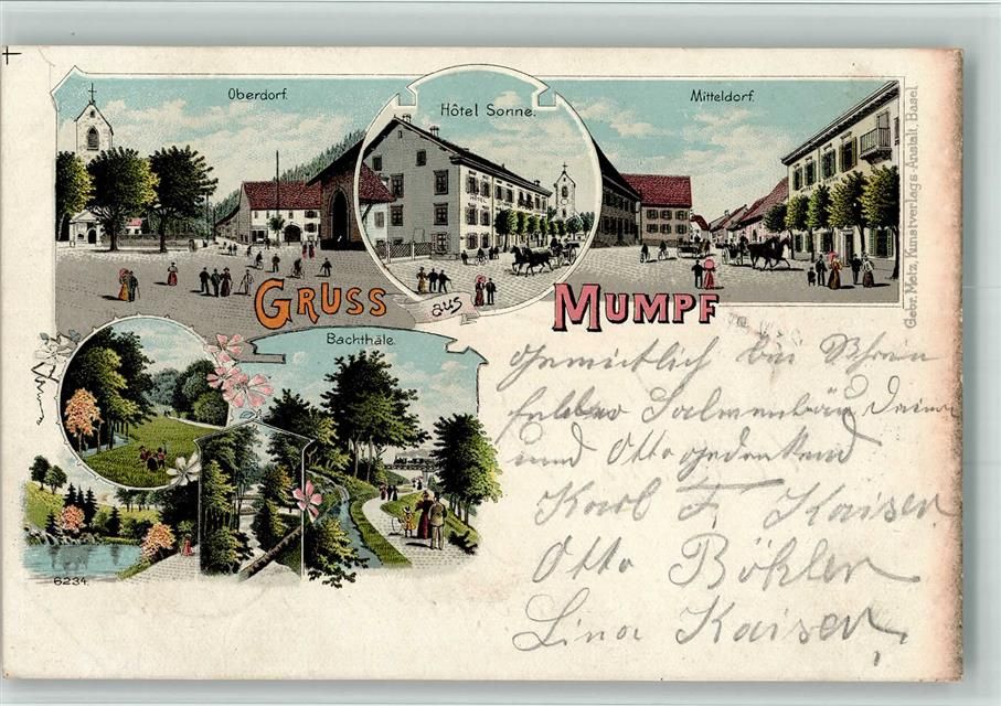 4322 Mumpf 1899 BOAKC Hotel Sonne Bachtal Lithographie