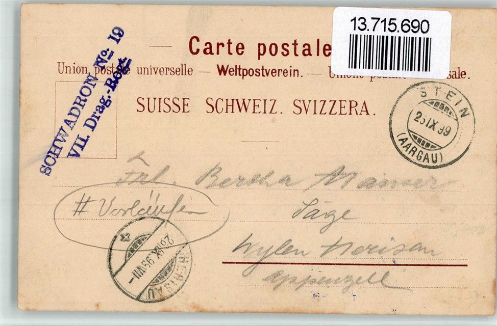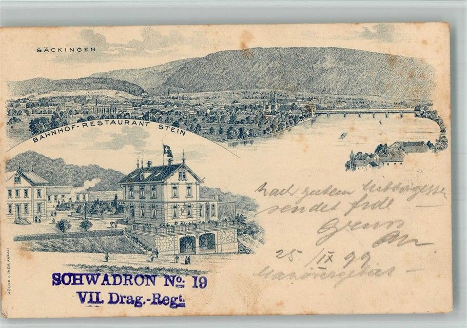 Stein AG, Bahnhof Gasthaus Feldpost Schwadron Nr. 19 VII.Drag.Regt. Vorläufer Lithographie