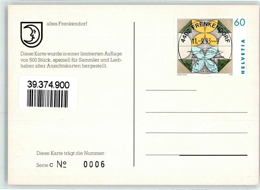 4402 Frenkendorf Ganzsache Kirche Denkmal limitierte Auflage Karten Nr 0006 Serie C
