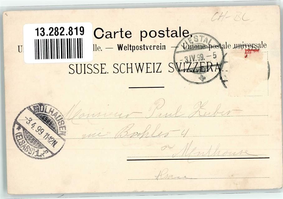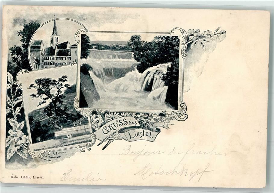 4410 Liestal 1899 Künstlerkarte Kessel Kirche sign. Laudin,A.