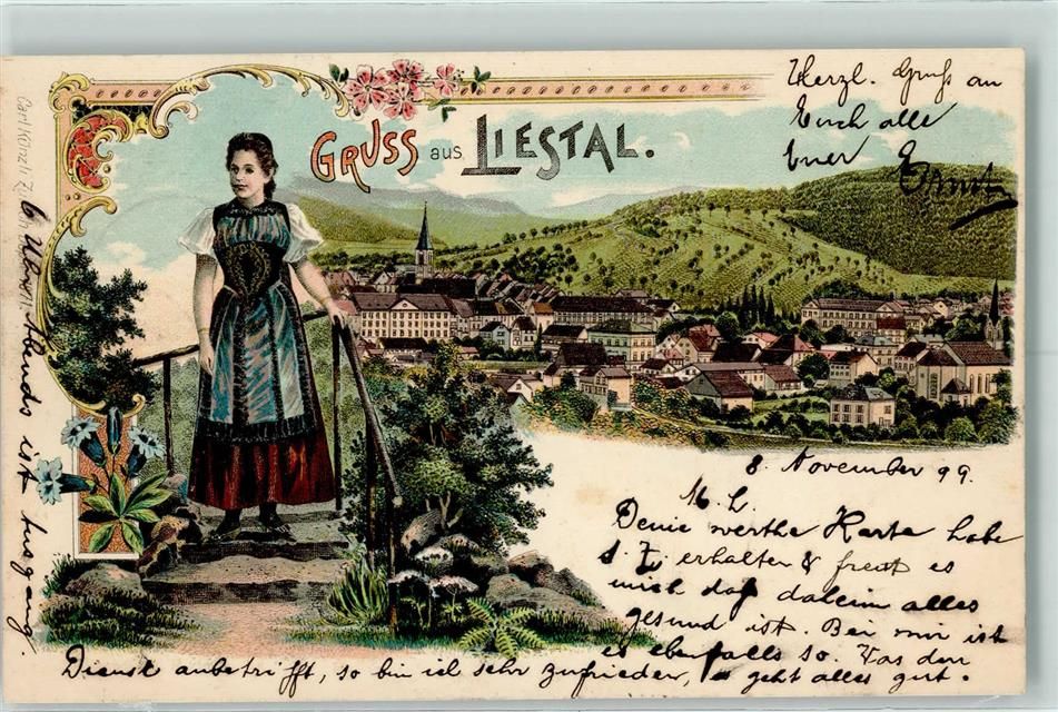 4410 Liestal 1899 Lithographie Frau in Tracht