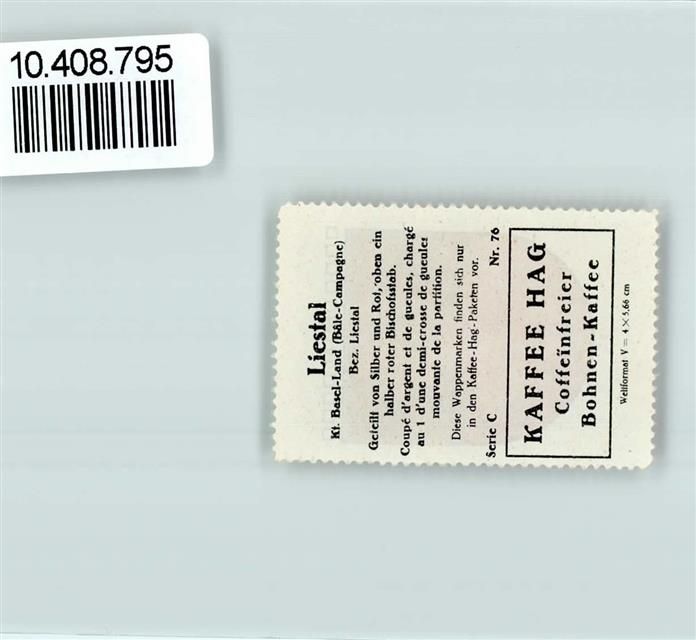 Liestal, Vignette Wappen Kaffee Hag ca 1920-1940