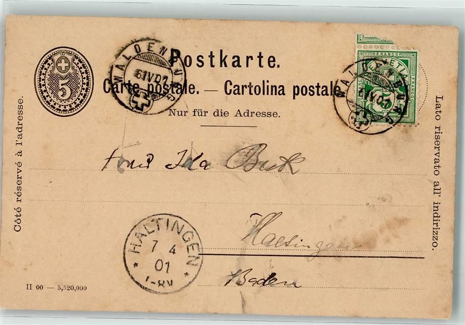 4437 Waldenburg 1901 Ganzsache 5 Rappen