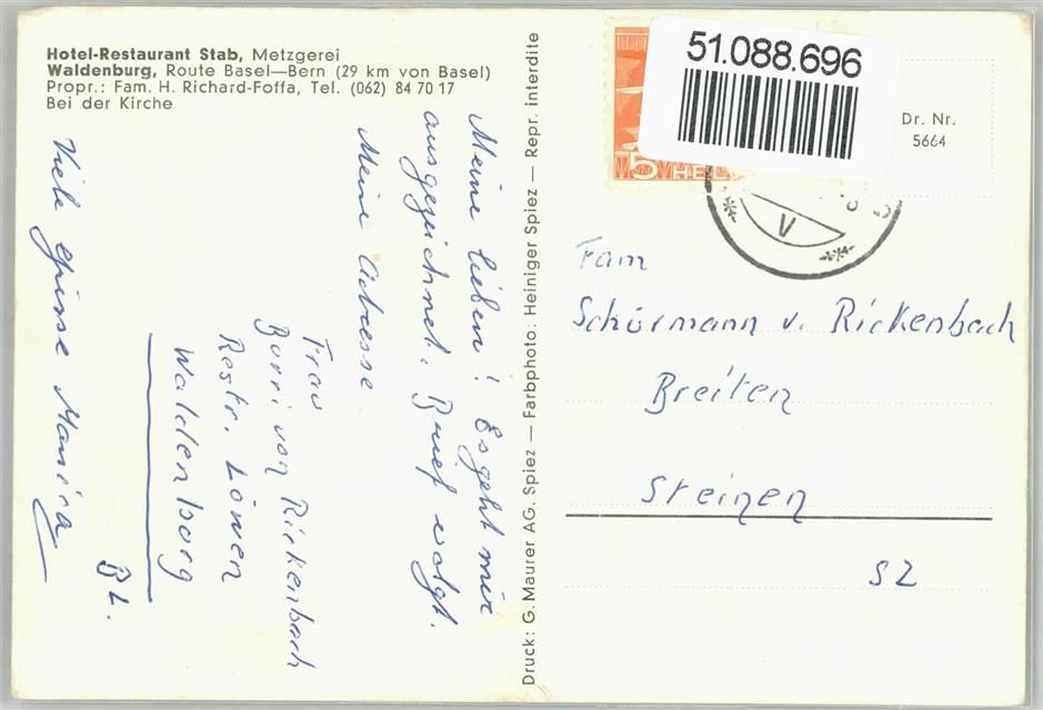 4437 Waldenburg - Gasthaus, Metzgerei zum Stab