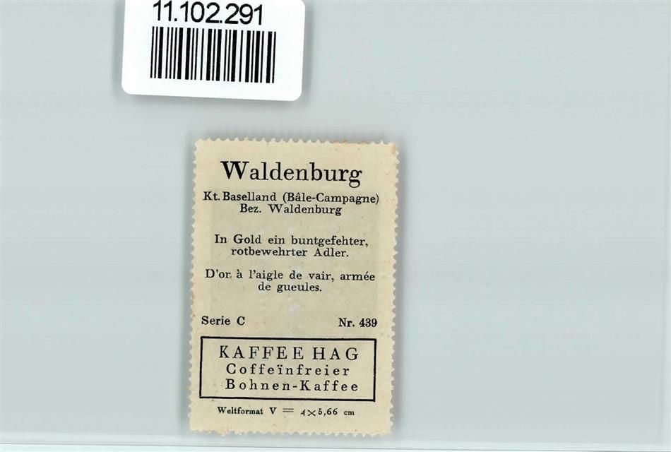 4437 Waldenburg - Vignette Wappen Kaffee Hag ca 1920-1940